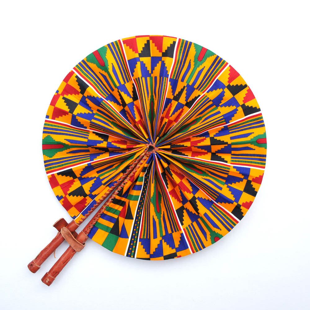 ケンテうちわ (アフリカン うちわ 折りたたみ式 )322 Kente Fan ガーナ製 Made in Ghana ケンテ柄 Kente