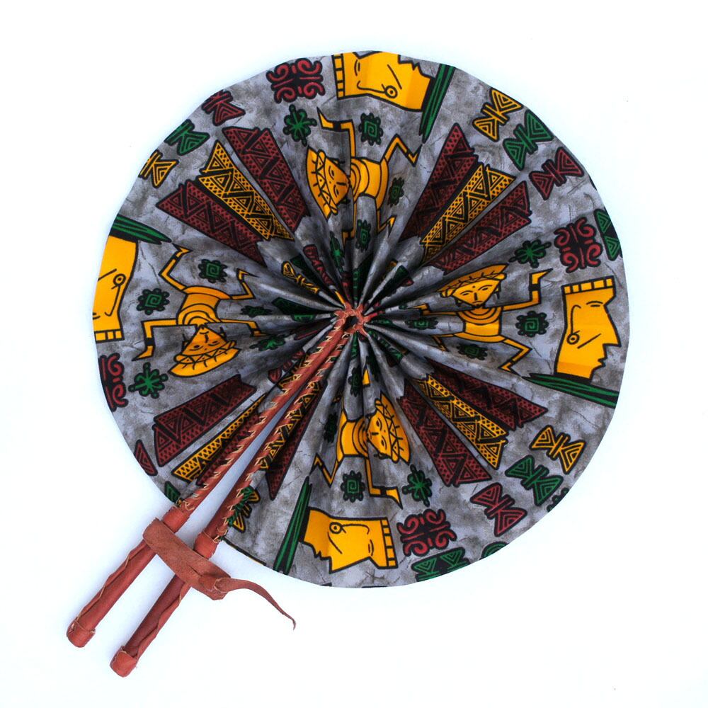 ケンテうちわ (アフリカン うちわ 折りたたみ式 )503 Kente Fan ガーナ製 Made in Ghana アフリカ柄 African