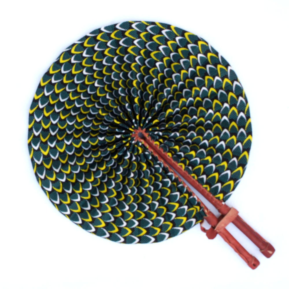 ケンテうちわ (アフリカン うちわ 折りたたみ式 )518 Kente Fan ガーナ製 Made in Ghana モダン柄 New Style