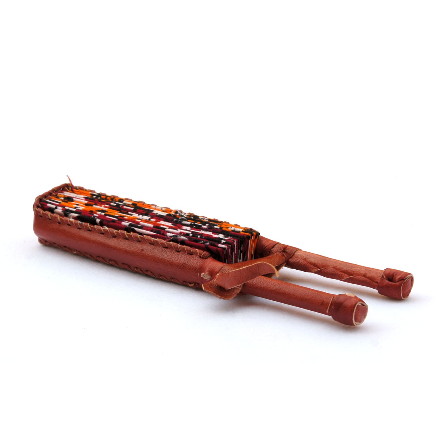 扇面にアフリカ色豊かなアフリカンプリント綿布を使い、柄には高級感の漂う羊皮を巻いた折りたたみうちわ。団扇の仰ぎやすさや強い風と扇子の持ち運びやすさやデザイン性を兼ね備えたハイブリッドうちわ。ガーナ職人がひとつひとつ丁寧に手づくりしました。