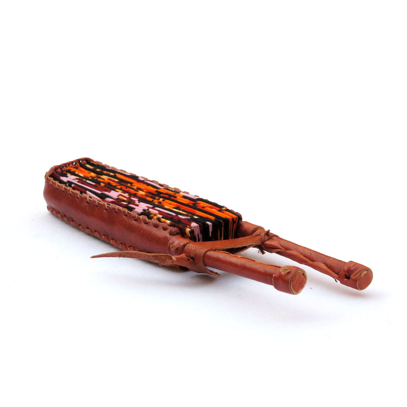 扇面にアフリカ色豊かなアフリカンプリント綿布を使い、柄には高級感の漂う羊皮を巻いた折りたたみうちわ。団扇の仰ぎやすさや強い風と扇子の持ち運びやすさやデザイン性を兼ね備えたハイブリッドうちわ。ガーナ職人がひとつひとつ丁寧に手づくりしました。